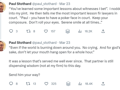 Paul Stothard of Norton Rose Fulbright compares Boris Johnson’s Partygate committee hearing questioning to a rather disastrous day he had in court some 25 years ago…